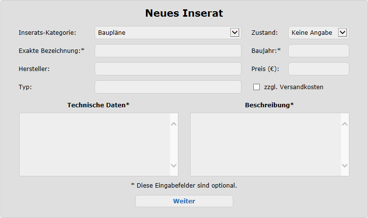 Hier können Sie nachträglich Informationen im ihrem Inserat korrigieren, hinzufügen oder löschen.