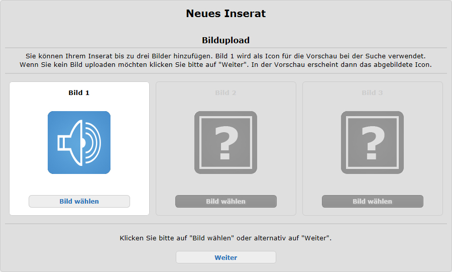 in der Inserats-Vorschau und in der Detail-Ansicht das unter "Bild 1" dargestellte Icon angezeigt,